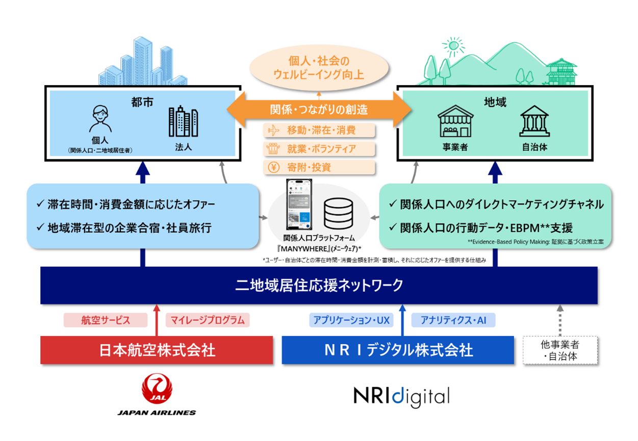 JALとNRIデジタル、二地域居住サービスにおいて 関係人口アプリ「MANYWHERE」を導入